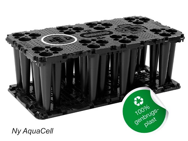 Den nye generation AquaCell kan stables, så volumen kan reduceres med op til 75% pr. vognlæs sammenlignet med den gamle Aquacell. Det betyder mindre CO2-udledning. Og stablingen af kassetterne sparer plads på byggepladsen – og på lageret.
