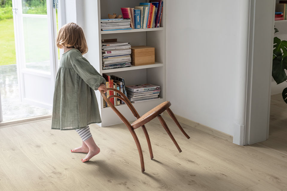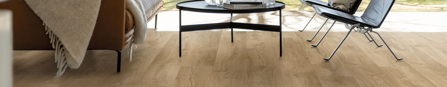 Vores gulve er designet med AquaSafe-teknologi, hvilket gør dem 100% vandafvisende. Dette forhindrer, at væsker trænger ned i gulvet og skaber pletter eller skader. Samtidig gør det rengøringen let og bekvem, og vi tilbyder op til 15 års vådgaranti.