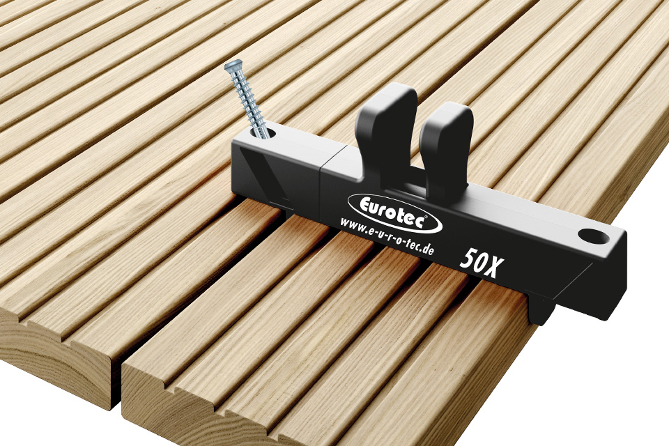 Du kan også vælge at bruge monteringsværktøjet Eurotec 50X, der er velegnet til f.eks trykimprægneret træ, brun-imprægneret træ, fyr, douglas, termotræ/varmebehandlet træ og gran.