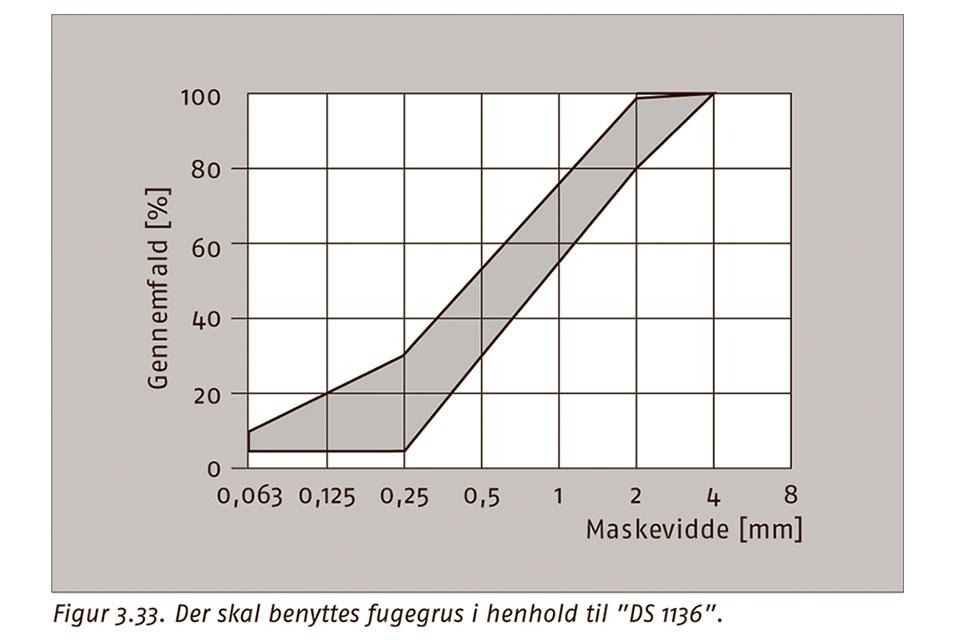 Der skal altid benyttes 0-4 mm fugegrus (i henhold til DS 1136).