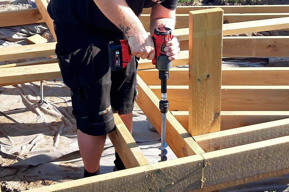 Optimer dit terrasseprojekt med GroundPlug® Skruefundamenter™. Du slipper for tungt og slidsomt grave- og støbearbejde, og du bliver hurtigere færdig. Og det bedste af det hele er, at du ikke behøver vente på, at fundamentet tørrer. Du kan fortsætte dit projekt, så snart sidste skruefundament er installeret og monteret.