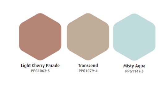 Farveharmonien består af farverne Transcend, Light Cherry Parade og Misty Aqua.