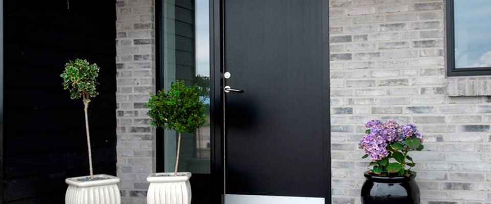 Vælger du en mere moderne dør, fungerer den bedst, hvis resten af huset matcher – f.eks. skal vinduerne være i samme materiale og helst samme sort, hvis vi taler om træ.