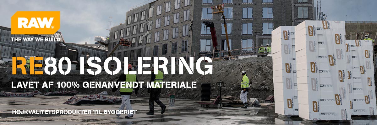 RAW RE80 isolering er fremstillet af fraskær og brugte fiskekasser, der brydes op og derefter gennemgår stort set samme produktionsproces som ny EPS - også kaldet hvid isolering eller flamingo. Dét sikrer de samme egenskaber som ny ESP. Produktet er fremstillet af 100% genanvendt materiale, der reducerer Co2-udslippet i produktionen med 56%*.