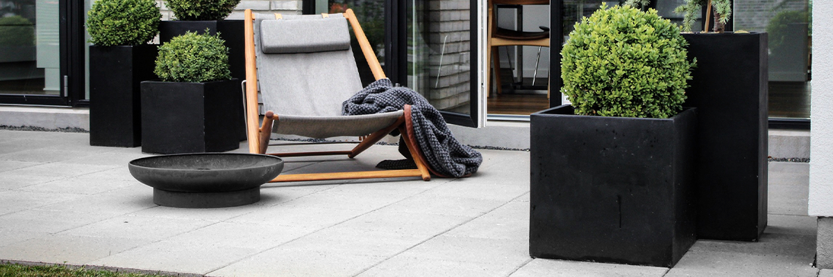 Det er blevet moderne med meget mørke farver på terrasser, men når solen har stået og bagt et par timer på en sort terrasse – hvad enten den er af sten eller træ – så bliver den meget varm at gå på.
