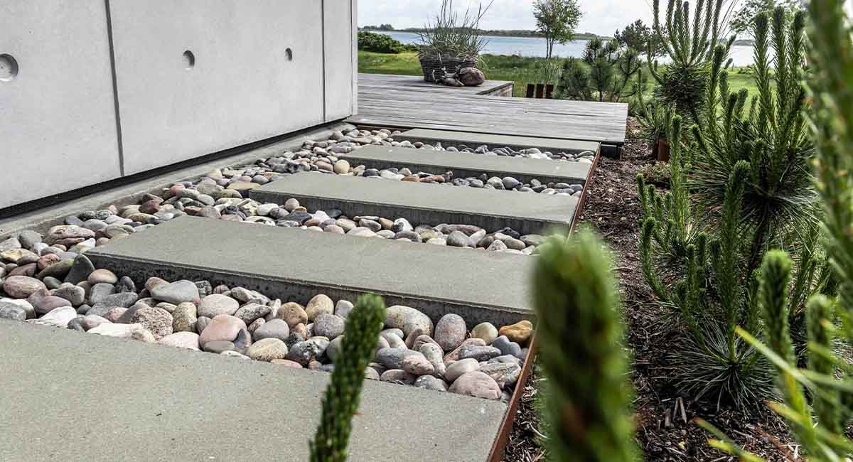 Betonfliser er driftssikre og modstandsdygtige over for det nordiske klima, hvilket gør dem ideelle til blandt andet terrasser og indkørsler. Arbejd med niveauforskelle, trin og plateauer for at skabe dynamik og funktionelle uderum, der matcher dine kunders behov.