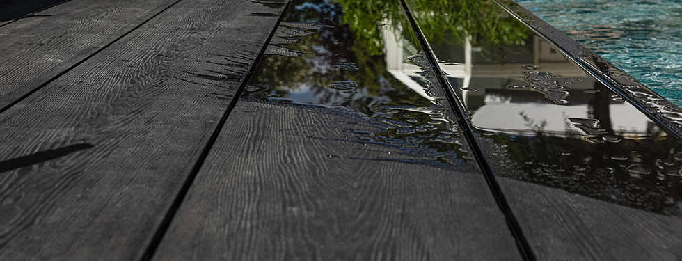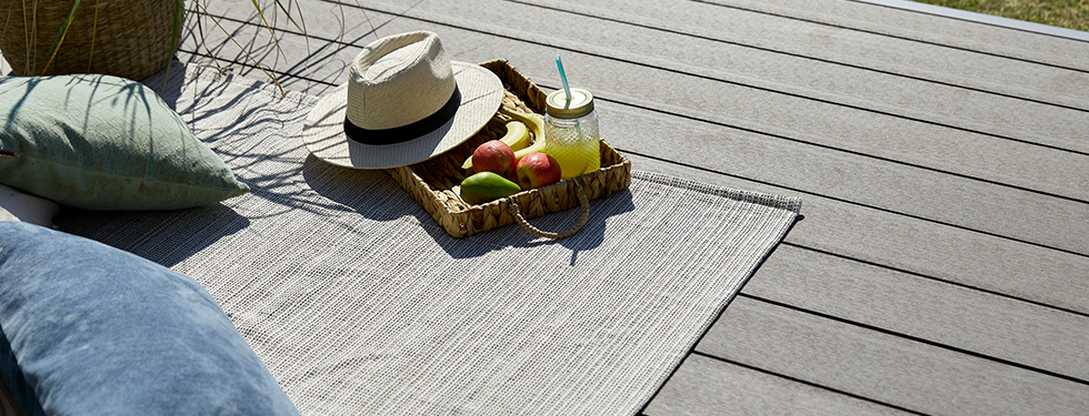 Materialet er designet til at ligne træ, er samtidig modstandsdygtigt over for alger, skimmel og svamp og er behageligt at gå på.