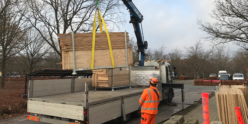 Byggepladsen opretter sig nedenfor, og der aftales bestilling af U-jern til byggepladsen. Bemærk, at der som minimum skal bestilles to U-jern. Det genbrugsegnede træ, som ellers vil blive smidt i affaldscontaineren, kan nu i stedet lægges i GENTRÆs U-jern.