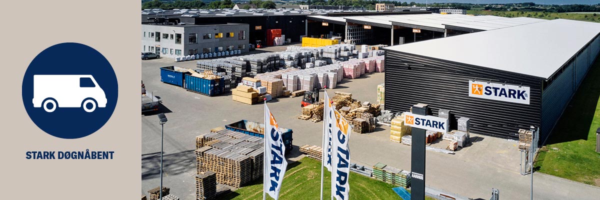 Vil du undgå at være afhængig af normal åbningstid, når du skal bruge byggematerialer? Bestil dine varer i din lokale STARK-forretning og afhent på STARK Distributionscenter i Årslev både inden for og uden for normale åbningstider.